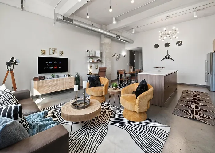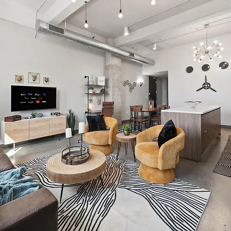 The spacious 84 m² Industrial Loft - Sleeps 10 - Free Valet Apartment Dallas is located in Dallas, just 1.4 km from the Dealey Plaza, and offers guests a swimming pool and a fitness studio. The apartment lies right in the centre of Dallas, within reach of the Pioneer Plaza.